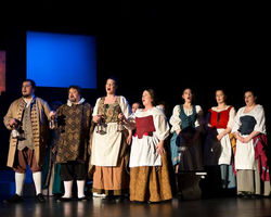 "Shipley dresses everyone in the colors of the rainbow, which adds some elegance to the Vernons’ outfits and to the divine and simple black and white garb worn by the Puritans."